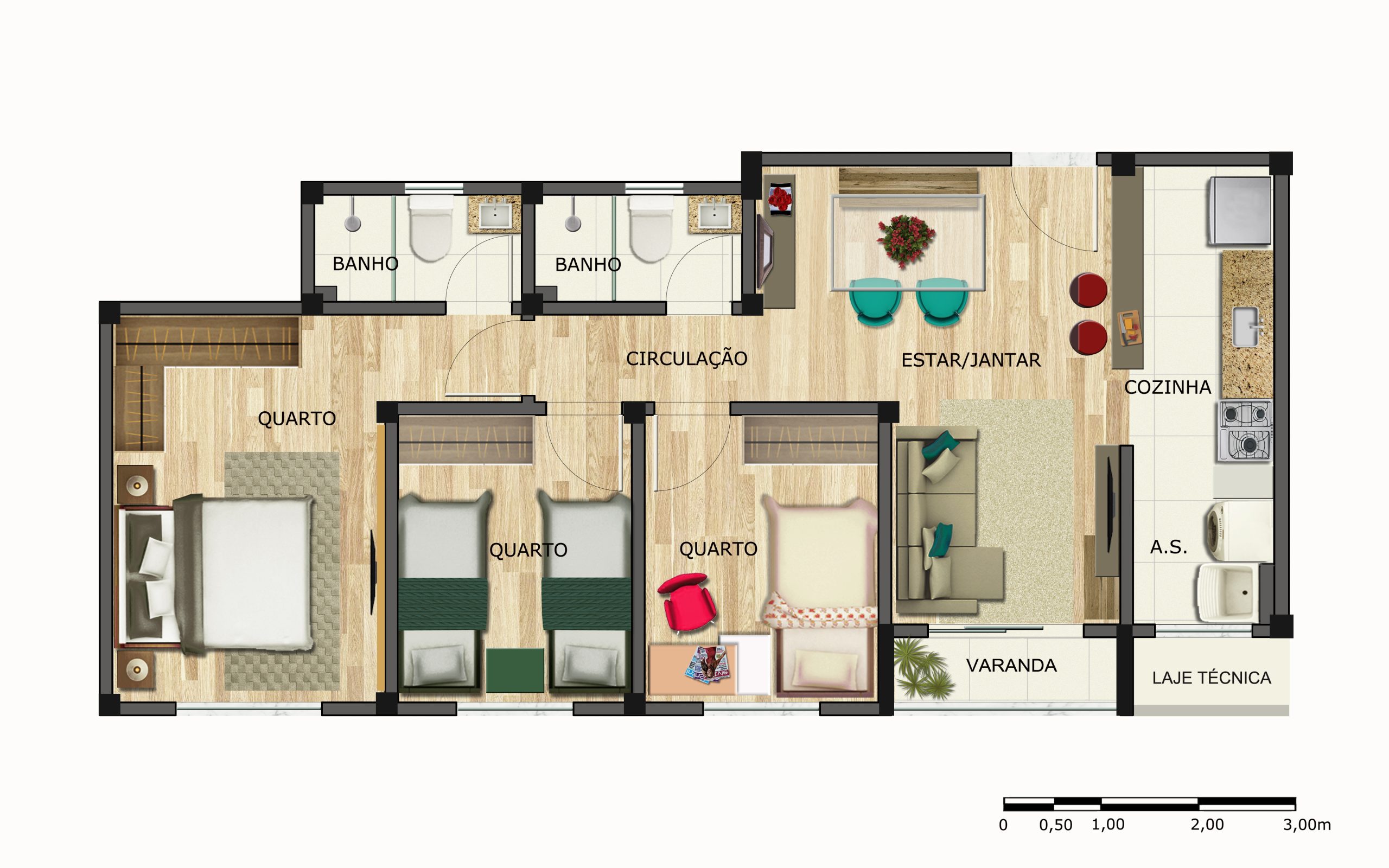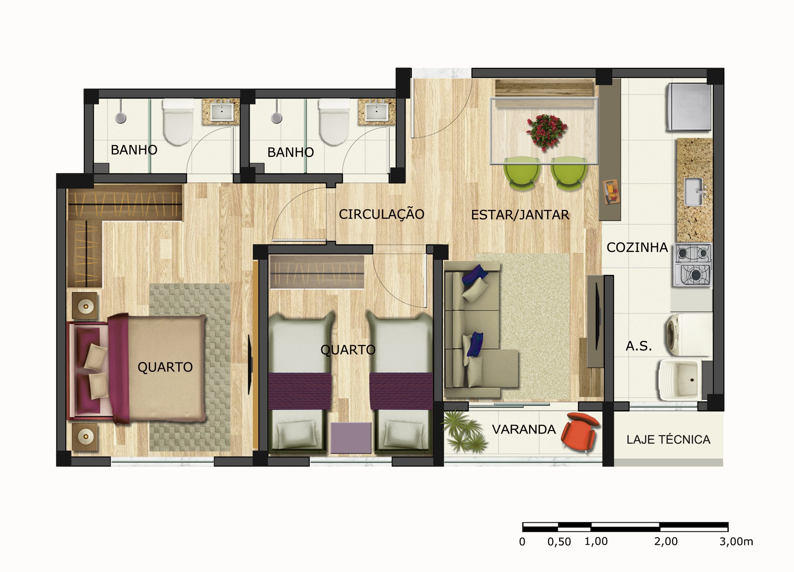 Imagens com decoração meramente ilustrativa. As especificações dos acabamentos e revestimentos de piso, parede e teto serão entregues no empreendimento conforme o Memorial Descritivo anexo ao Contrato. Todos elementos decorativos e adornos, itens de marcenaria, eletrodomésticos e eletrônicos, luminárias, aparelhos de ar condicionado, vidros de box e demais acessórios de banheiro, espelhos, cortinas, roupa de cama, adesivos e outros elementos, não serão entregues pela construtora e incorporadora. Todos equipamentos sanitários, pias, tanques, bancadas, torneiras, acabamentos de registros e demais equipamentos fixos que serão entregues pela construtora, poderão ter seus modelos alterados por condições mercadológicas ou técnicas, sem aviso prévio. Podem ocorrer variações nas dimensões dos ambientes, inclusive na posição de pontos elétricos, de água, de tomadas, de ar condicionado ou outras instalações, de acordo com as diferentes numerações de colunas dos apartamentos, ou por necessidade de adaptações técnicas. As áreas “garden” descobertas dos apartamentos térreos, quando aplicável, podem variar em formato e área total, de acordo com a posição no empreendimento e necessidade de adequações técnicas, seguindo o descrito no Memorial Descritivo e no Contrato da unidade adquirida. Todos os projetos estão sujeitos a alterações em função de adequações técnicas, legislações vigentes ou exigências de órgãos públicos.