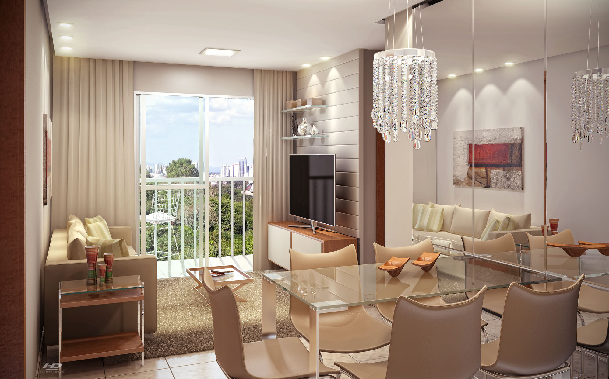 Imagens com decoração meramente ilustrativa. As especificações dos acabamentos e revestimentos de piso, parede e teto serão entregues no empreendimento conforme o Memorial Descritivo anexo ao Contrato. Todos elementos decorativos e adornos, itens de marcenaria, eletrodomésticos e eletrônicos, luminárias, aparelhos de ar condicionado, vidros de box e demais acessórios de banheiro, espelhos, cortinas, roupa de cama, adesivos e outros elementos, não serão entregues pela construtora e incorporadora. Todos equipamentos sanitários, pias, tanques, bancadas, torneiras, acabamentos de registros e demais equipamentos fixos que serão entregues pela construtora, poderão ter seus modelos alterados por condições mercadológicas ou técnicas, sem aviso prévio. Podem ocorrer variações nas dimensões dos ambientes, inclusive na posição de pontos elétricos, de água, de tomadas, de ar condicionado ou outras instalações, de acordo com as diferentes numerações de colunas dos apartamentos, ou por necessidade de adaptações técnicas. As áreas “garden” descobertas dos apartamentos térreos, quando aplicável, podem variar em formato e área total, de acordo com a posição no empreendimento e necessidade de adequações técnicas, seguindo o descrito no Memorial Descritivo e no Contrato da unidade adquirida. Todos os projetos estão sujeitos a alterações em função de adequações técnicas, legislações vigentes ou exigências de órgãos públicos.